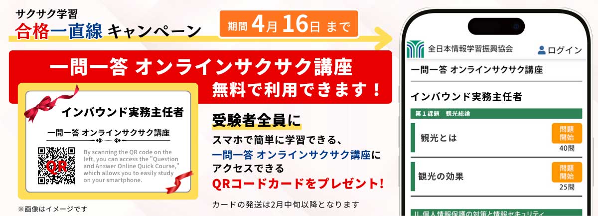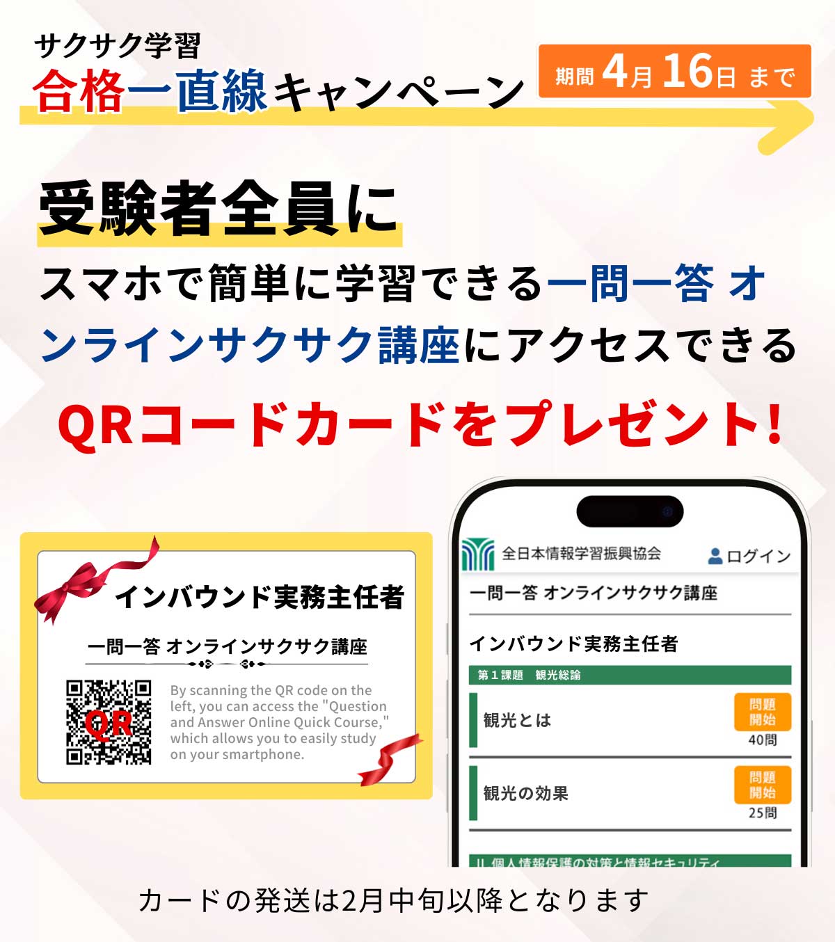 インバウンドビジネスに携わっている方は本試験を通して必須の知識を身に付けましょう。
